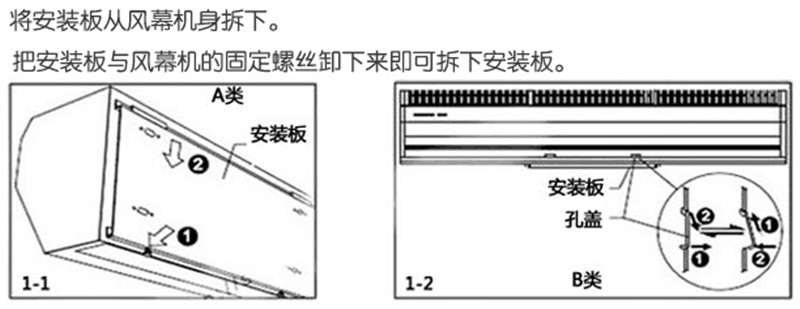 貫流式風幕機的安裝說明和簡圖