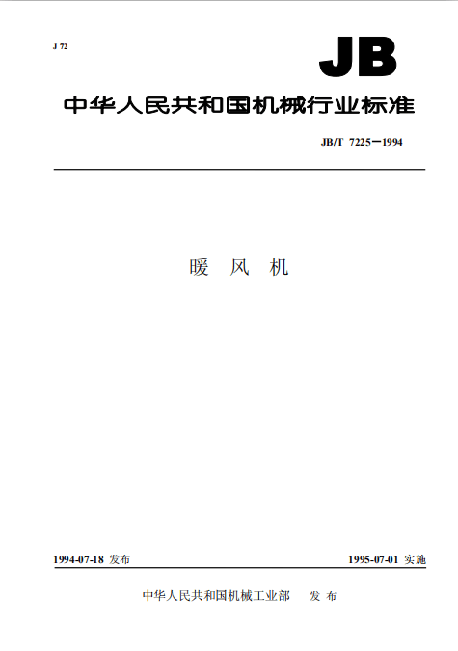目前,國內(nèi)的工業(yè)暖風(fēng)機(jī),包括熱水暖風(fēng)機(jī)、蒸汽暖風(fēng)機(jī)執(zhí)行的質(zhì)量技術(shù)標(biāo)準(zhǔn)為JB/T 7225-1994《暖風(fēng)機(jī)》機(jī)械行業(yè)標(biāo)準(zhǔn),