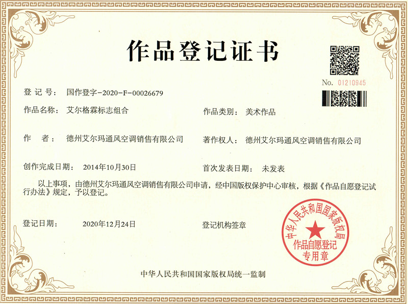 《艾爾格霖標志組合》通過中國版權(quán)保護中心的審核,取得作品版權(quán)登記證書。